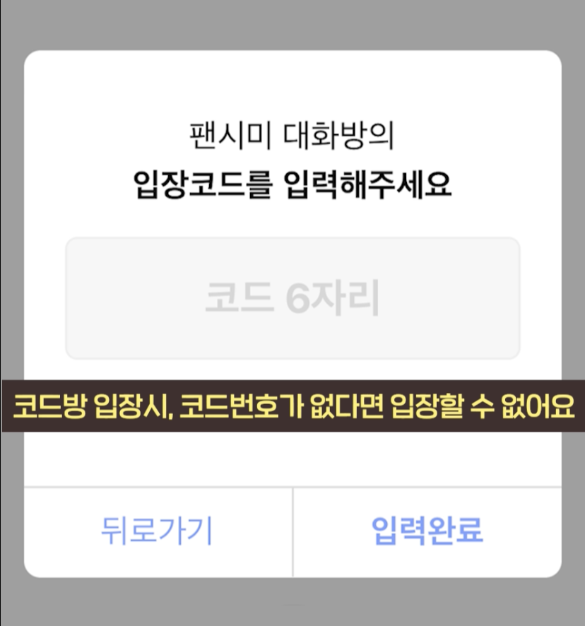 찐팬에게만 채팅방 코드를 공유해 프라이빗하게 이야기할 수 있어요!